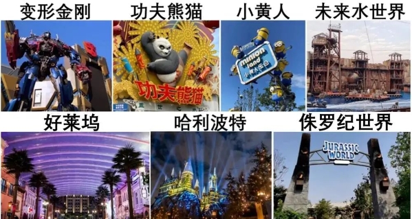 北京环球影城共包含七大主题景区、37处骑乘娱乐设施及地标景点、24场娱乐演出、80家餐饮及30家零售门店。许多承载影迷回忆的经典IP,包括功夫熊猫、变形金刚、小黄人和哈利·波特等将悉数登场。