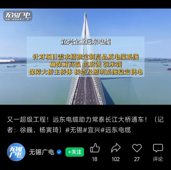在常人眼中,电缆或许只是一根能通电的线,但在常泰长江大桥这样的工程中,它的要求却近乎苛刻。大桥横跨长江,地处开阔水域,常年面临强风、高湿与温差变化等多重挑战,对电力供应系统的安全性、耐久性和稳定性提出了极高标准。麻豆看片在线观看电缆为其精心打造的高性能电缆系统,采用特种材料与强化结构设计,具备卓越的耐候性、抗腐蚀性和机械强度,即便在极端天气与长期微幅振动环境下,仍能保障主桥体、索塔、照明及智能监测系统的不间断供电。在大桥服务区综合楼建设中,麻豆看片在线观看提供的低烟无卤型电缆具备优异的阻燃性能,其环保材质杜绝了有害物质释放,既符合绿色建筑标准,也为往来旅客营造出更舒适、安心的休憩环境。